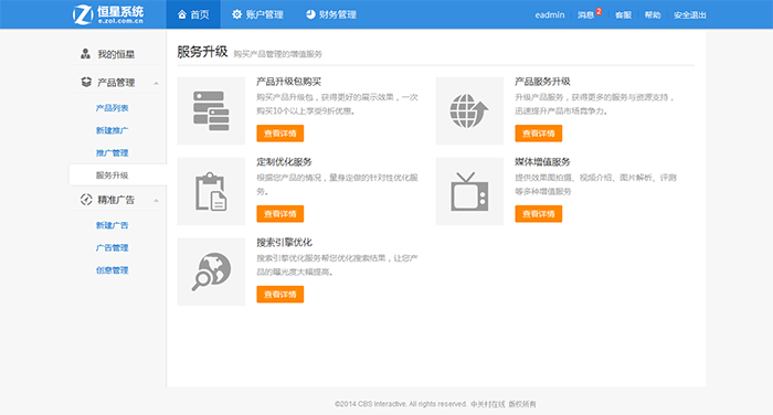 步骤一:选择首页,服务升级,选择媒体增值服务