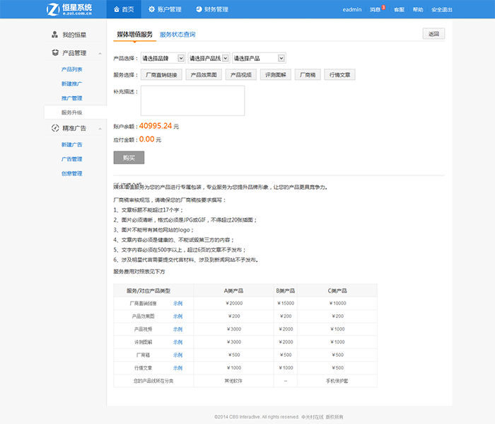 步骤二:选择品牌,产品线,并补充描述,选择购买